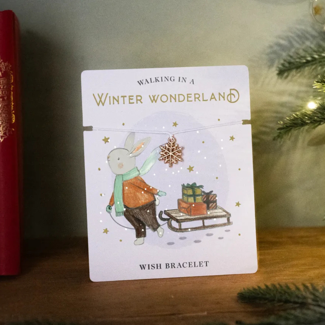 Capture the enchantment of the season with our adjustable Christmas snowflake charm wish bracelet, elegantly presented on a backing card that reads 'Walking in a Winter Wonderland'. This delightful bracelet is a perfect way to share holiday cheer and heartfelt wishes with someone special. Designed to comfortably fit any wrist, making it a versatile gift for anyone. The backing card includes a space for you to write your own personal message, adding a special touch to your gift.