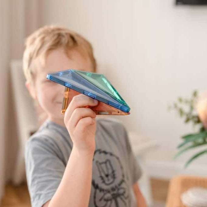 Featuring a variety of small and large squares, as well as equilateral, isosceles and right-angled triangles in our unique earthy pastel colours, the CONNETIX 64 Piece Pastel Starter Pack offers limitless play potential. Experience STEAM learning with the Pastel Starter Pack as children of all ages explore magnetism, physics, symmetry, patterns and problem-solving. Discover the features of shapes and how they tesselate in both 2D and 3D creations. Enjoy our exclusive range of warm and cool pastel tones. Spark creativity and imagination as you design and construct houses, castles, car parks, robots or coin drops, plus so much more.