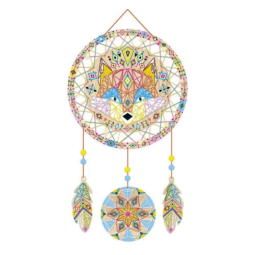 No nightmares with this handsome fox! With this creative kit, children from 8 years upwards can make a beautiful, luminous dreamcatcher using the stretched-wire technique. As well as being a pretty decoration for their bedroom, the fox dreamcatcher will reassure children, for nights without bad dreams! The little extra? It's illuminated, thanks to the included LED garland! Another good point for reassurance at night. This creative hobby features string art in a natural style. The activity develops children's creativity and patience, resulting in a beautiful work of art to display with pride!