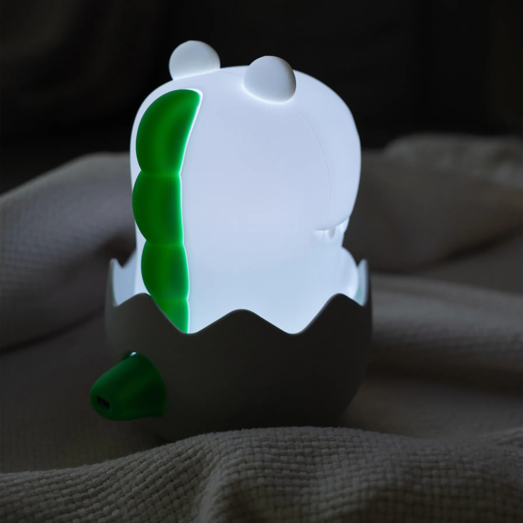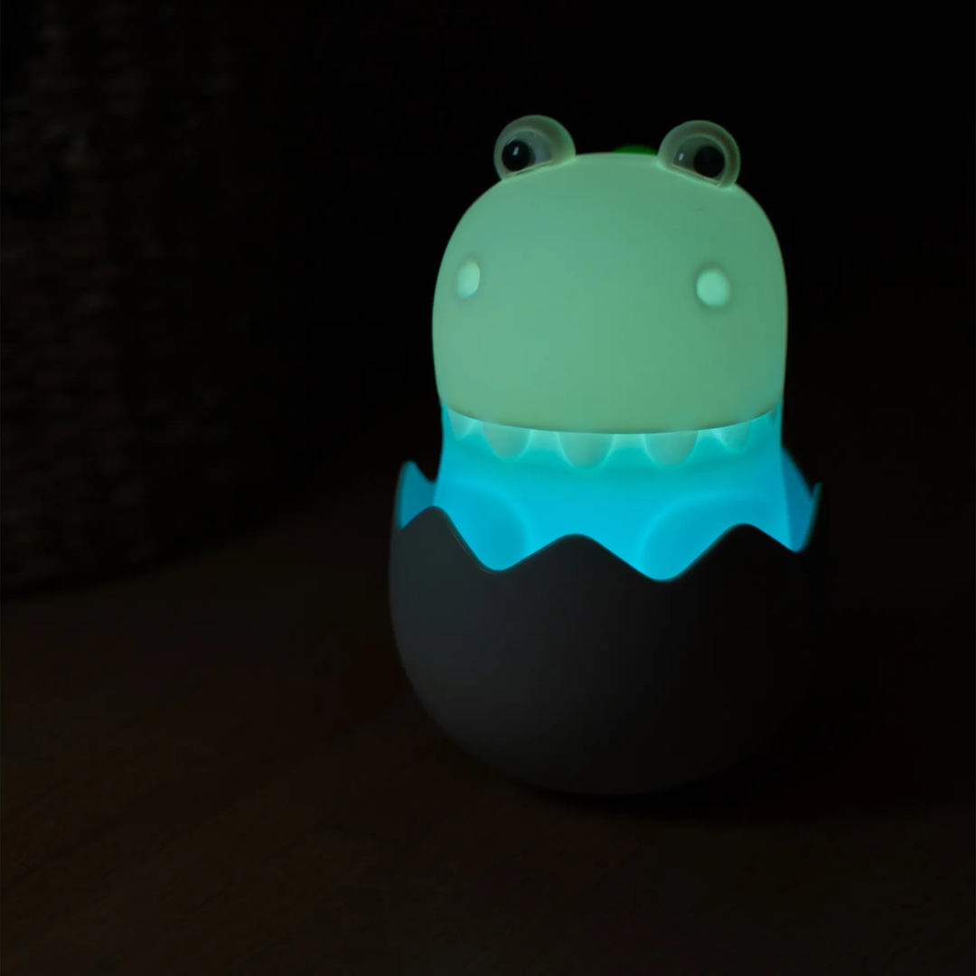 The stylish light with touch operation made of comfortable silicone encourages gripping and pressing – without the risk of small parts that can be swallowed thanks to moulded eyes. Eye-catching and soft – the dimmable baby light is also a great helper when feeding at night, because thanks to the gentle light, the eyes of mother and baby are not unnecessarily dazzled. The night lamp for babies and children has a colour changing function with 7 different colours (RGB) as well as sound effect (Rawr! ), which can also be switched off if required. Quick, easy charging of the snooze light thanks to the included USB charging cable; long light duration with one battery charge