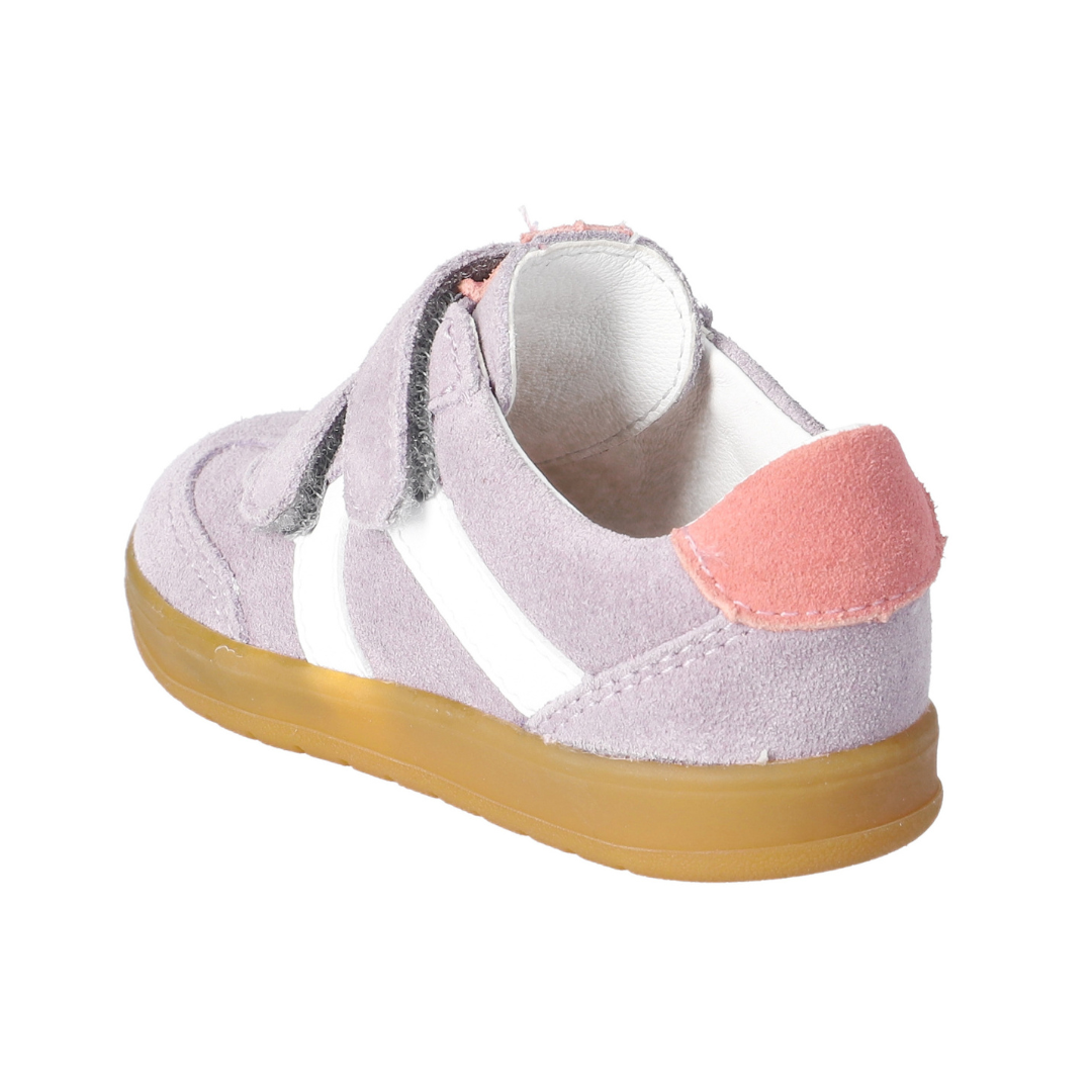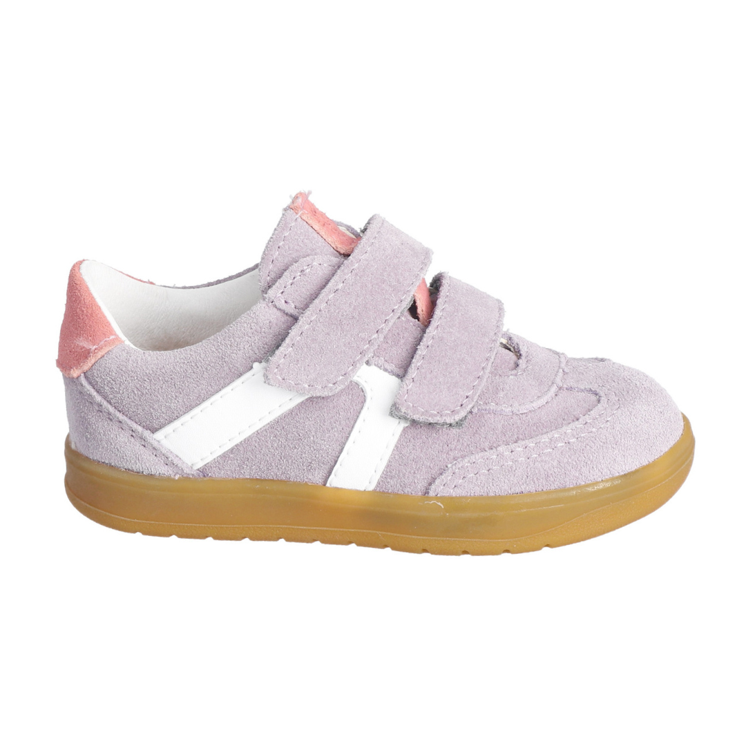 The Dakota is a retro styled shoe that is practical for every day and supports support growing feet with comfort and durability. Made from premium suede leather with a soft leather lining, it’s breathable, flexible, and perfect for active kids on the go. The double Velcro straps make them easy for little ones to put on and take off independently, while ensuring a secure fit. A lightweight gum rubber sole offers flexibility and grip, supporting natural movement as children play and explore. Detailing with a contrasting side flash and heel patch, these trainers are versatile and smart – ideal for nursery, or everyday adventures.