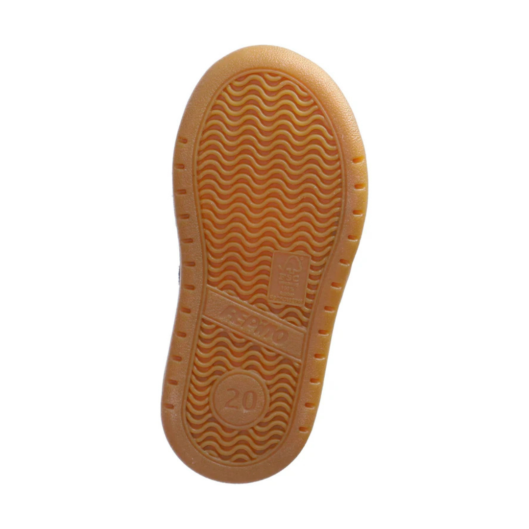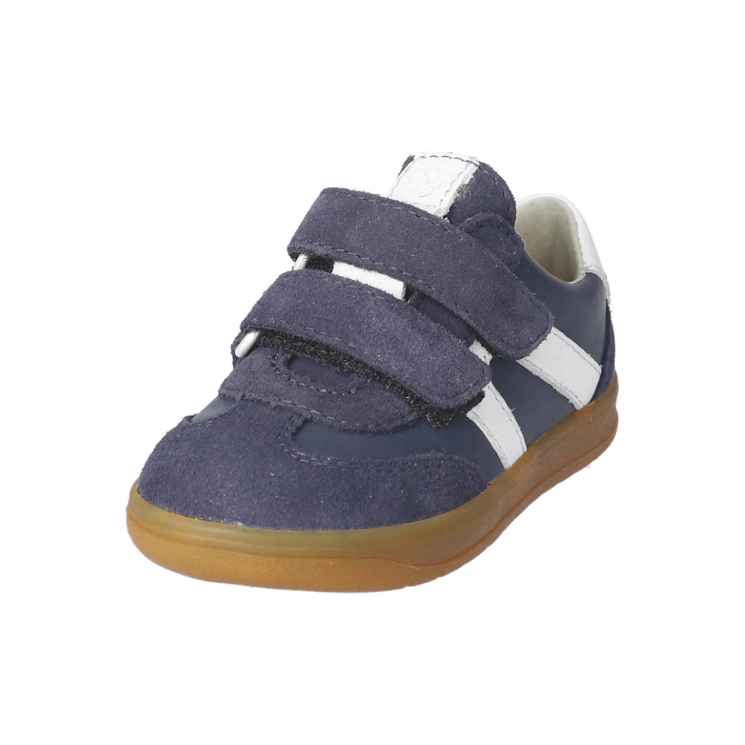 The Dakota is a retro styled shoe that is practical for every day and supports support growing feet with comfort and durability. Made from premium suede leather with a soft leather lining, it’s breathable, flexible, and perfect for active kids on the go. The double Velcro straps make them easy for little ones to put on and take off independently, while ensuring a secure fit. A lightweight gum rubber sole offers flexibility and grip, supporting natural movement as children play and explore. Detailing with a contrasting side flash and heel patch, these trainers are versatile and smart – ideal for nursery, or everyday adventures.