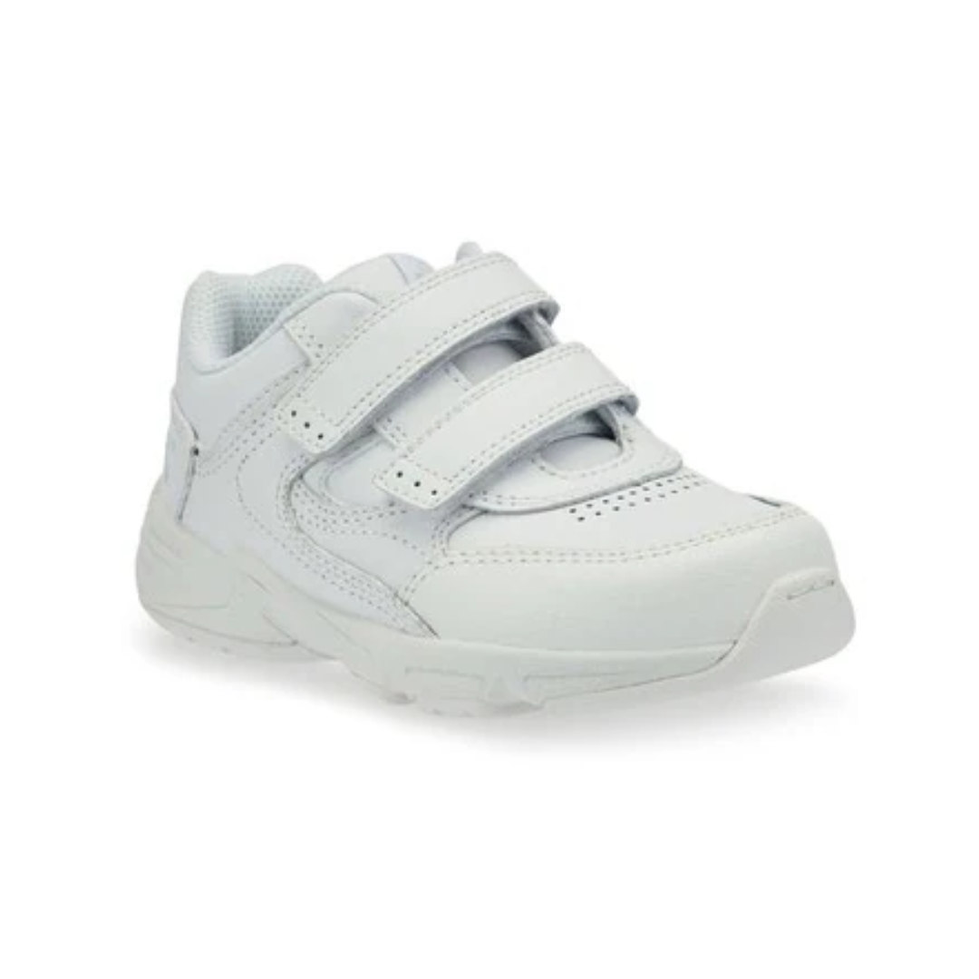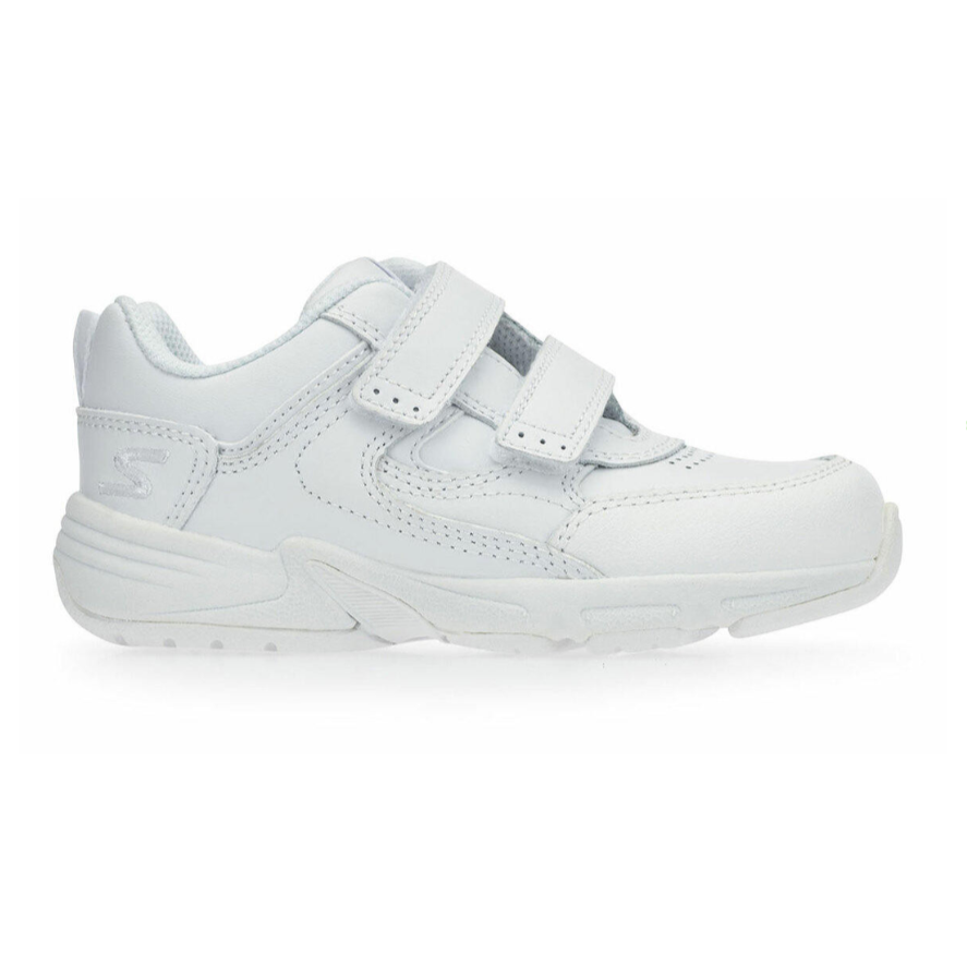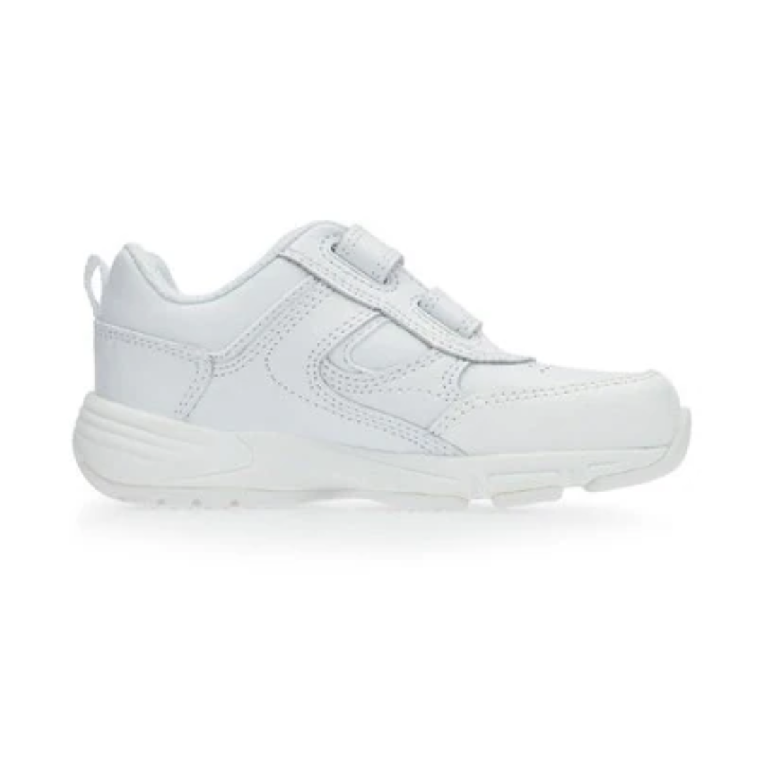 A versatile white school trainer to see off the competition. They’ll be off in a flash with these lightweight multi-purpose trainers. In white leather upper featuring removable in-socks to keep sporty feet fresh.