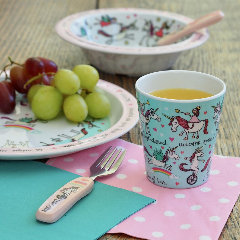 New Unicorns colourful melamine beaker, perfectly sized for little hands.