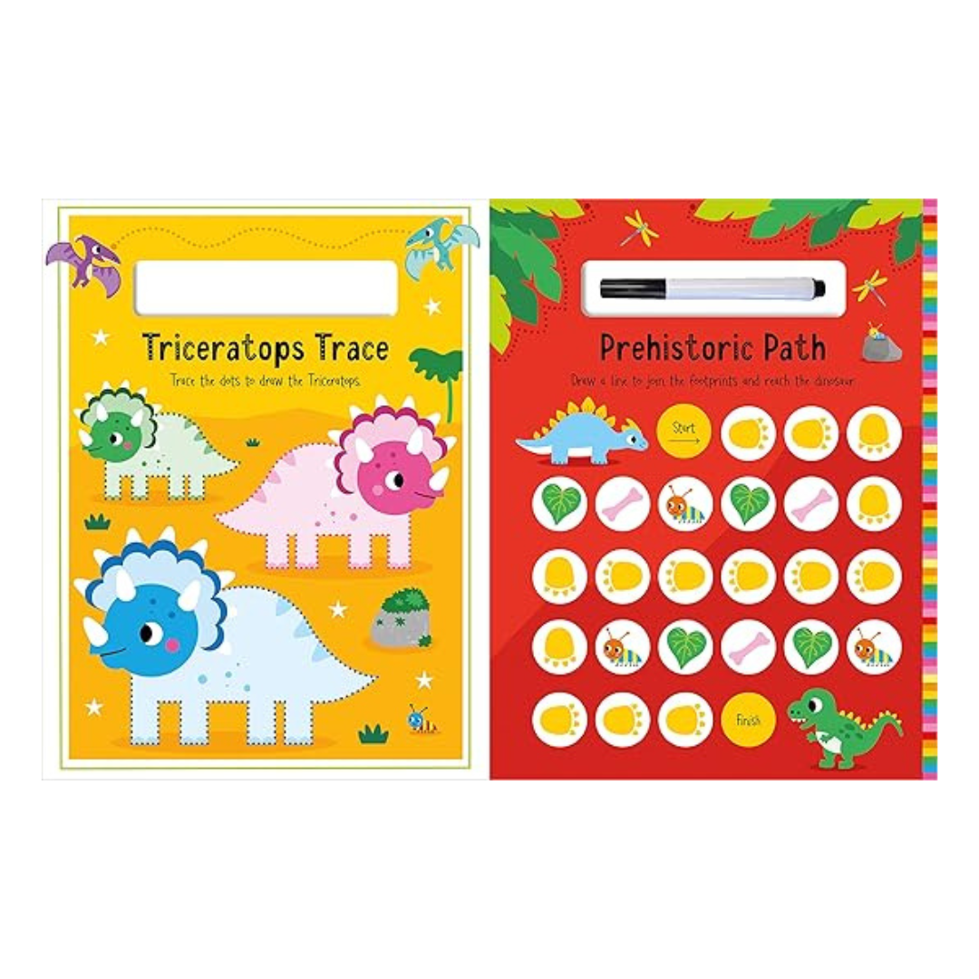 This wipe-clean dinosaur activity book is perfect for little ones to practise pen control and improve problem-solving skills. It uses bright, bold illustrations and enjoyable activities to encourage children to develop their tracing, writing, matching and counting abilities in a fun, engaging way. With reusable wipe-clean pages and a wipe-clean pen for plenty of activity fun again and again.