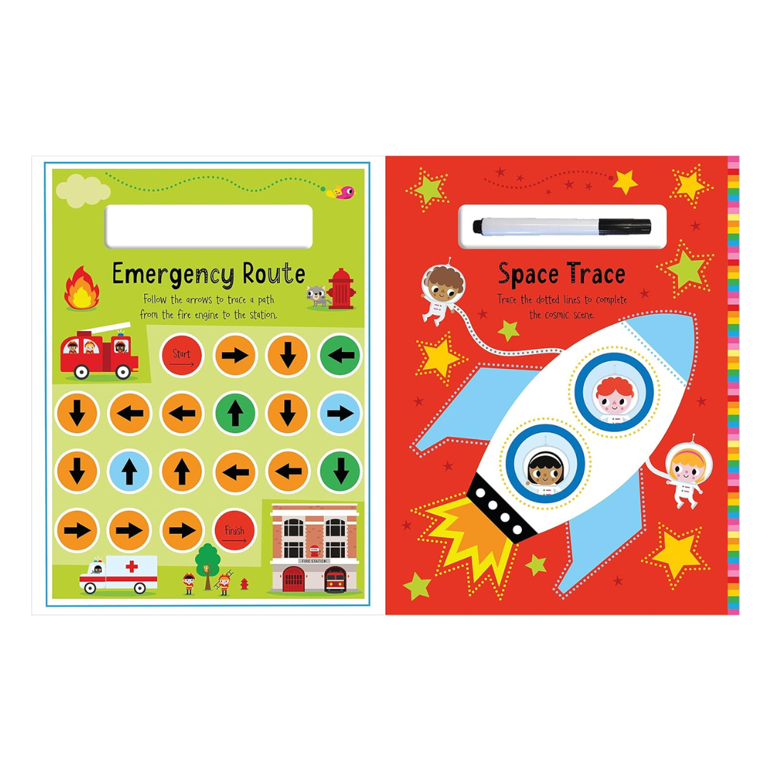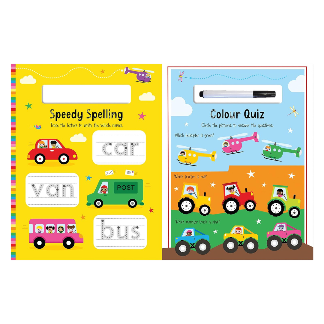 This wipe-clean vehicles activity book is perfect for little ones to practise pen control and improve problem-solving skills. It uses bright, bold illustrations and enjoyable activities to encourage children to develop their tracing, writing, matching and counting abilities in a fun, engaging way. With reusable wipe-clean pages and a wipe-clean pen for plenty of activity fun again and again.